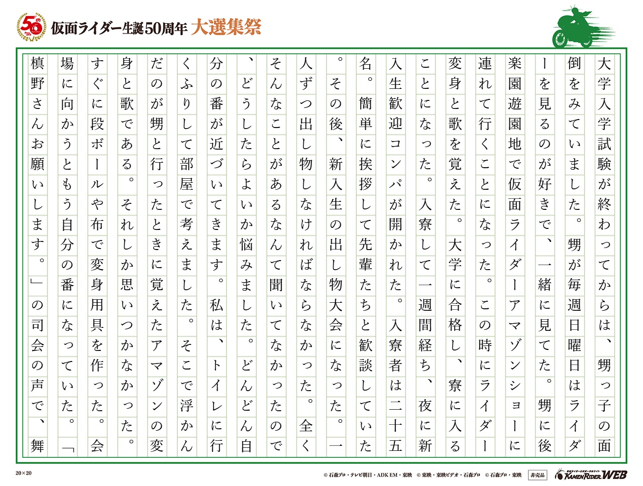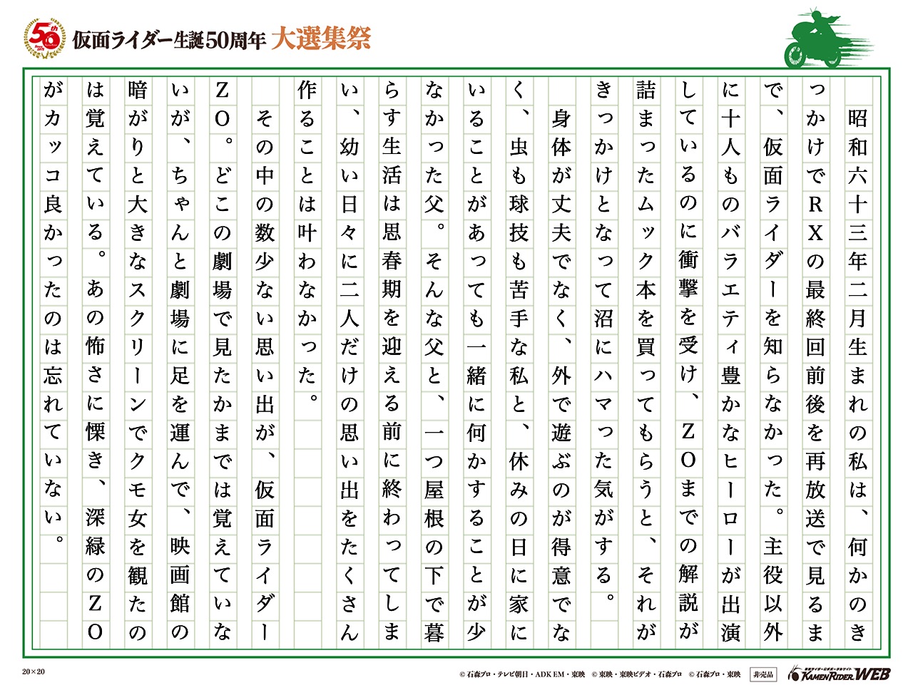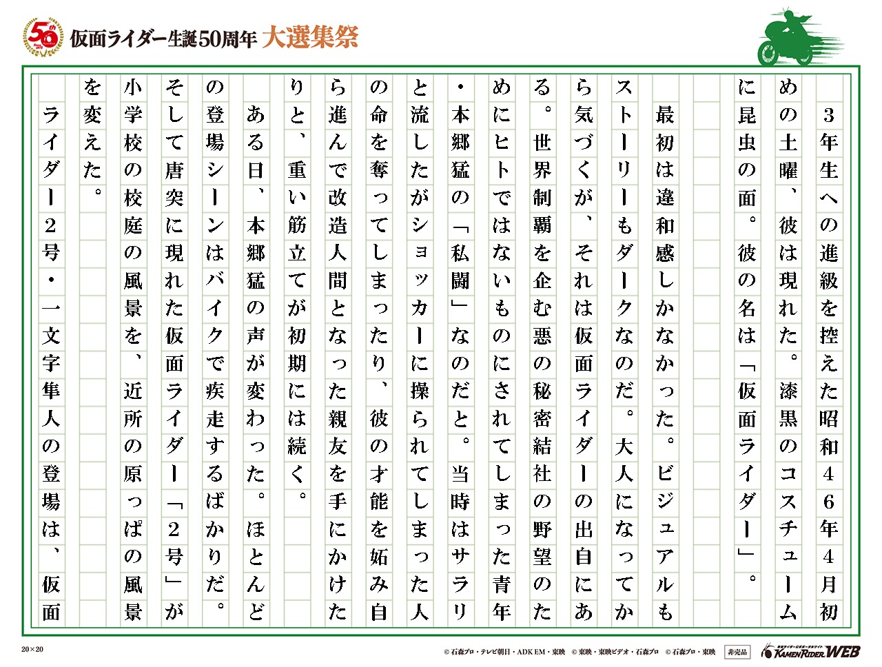 このたびは「仮面ライダー生誕50周年記念大選集」にご参加頂き、誠にありがとうございます。