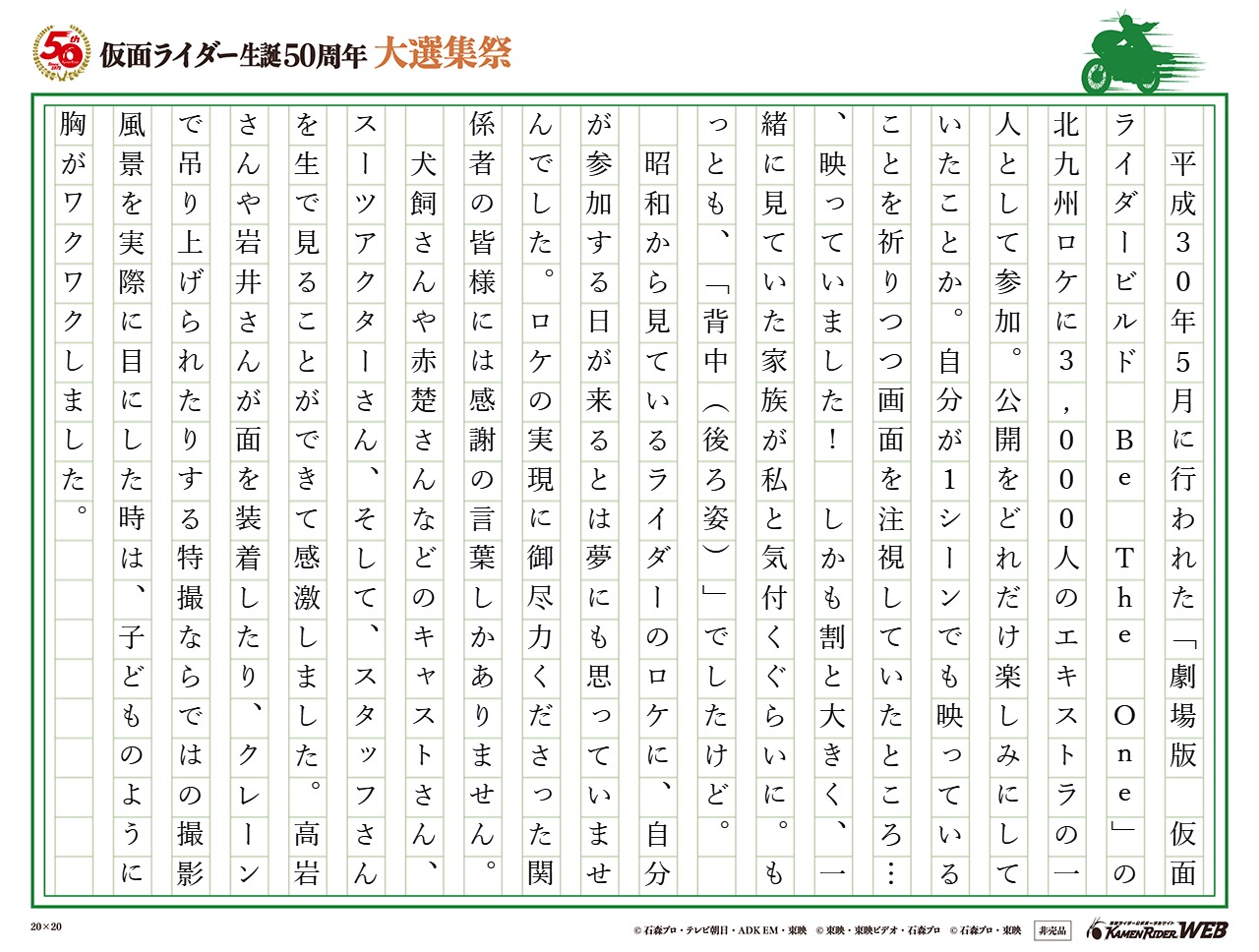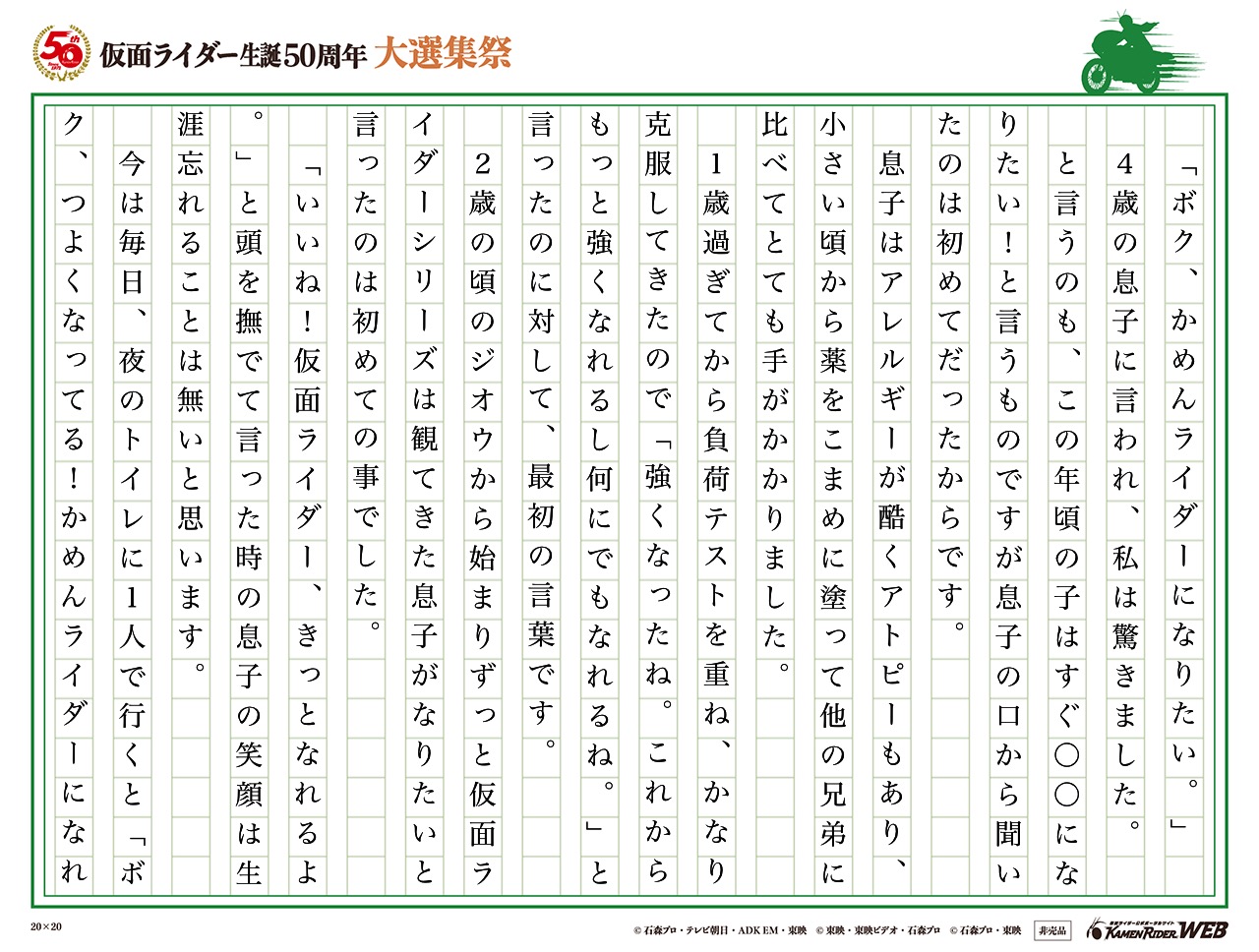 このたびは「仮面ライダー生誕50周年記念大選集」にご参加頂き、誠にありがとうございます。