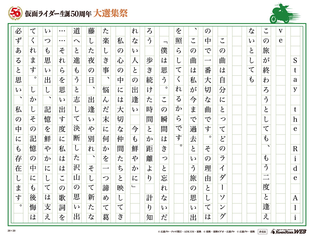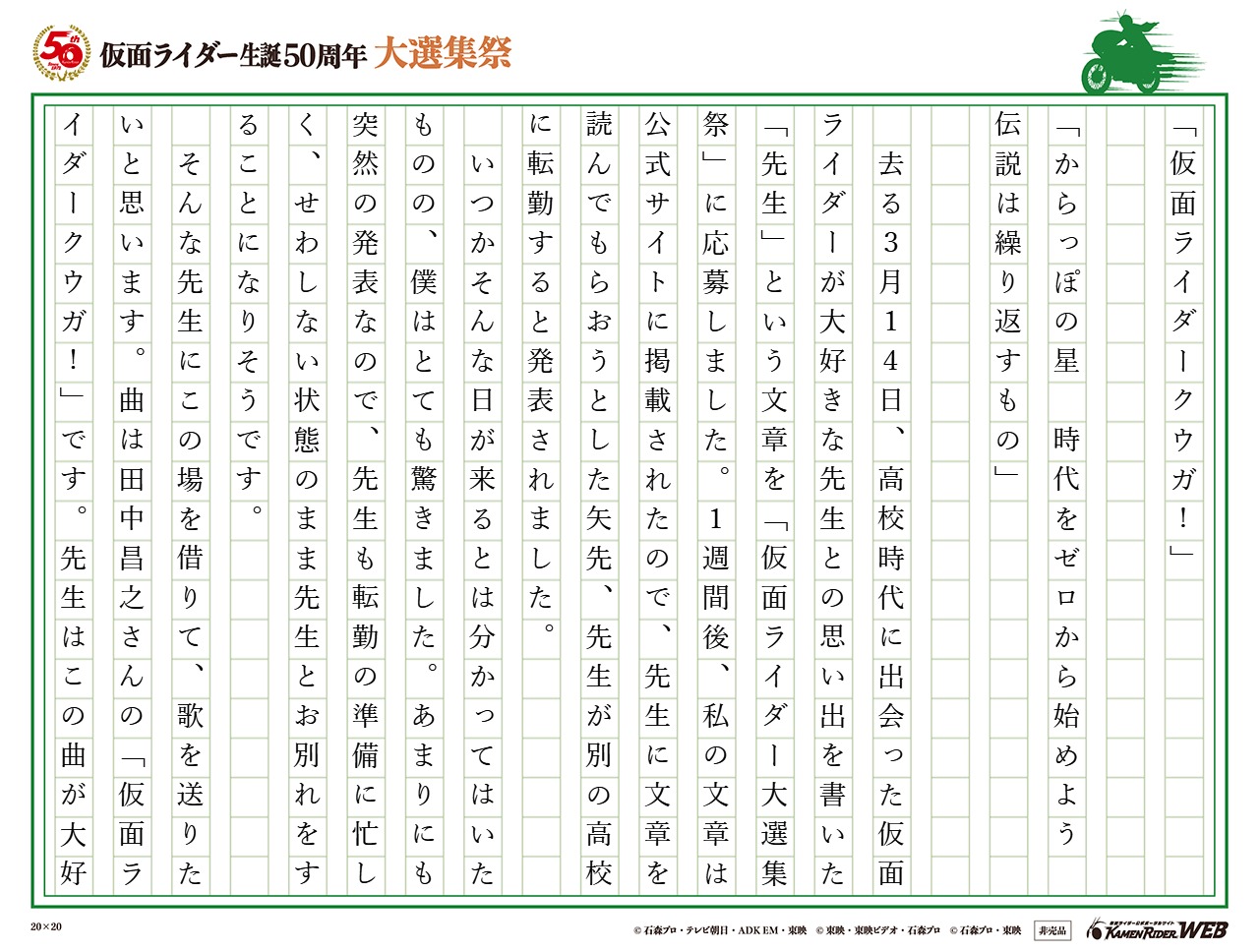 このたびは「仮面ライダー生誕50周年記念大選集」にご参加頂き、誠にありがとうございます。