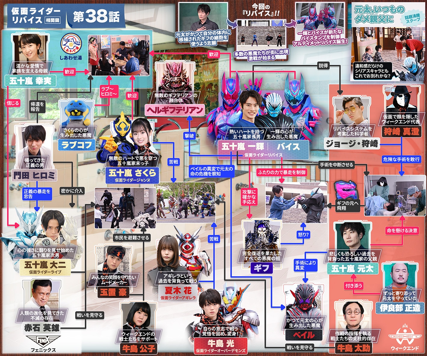 38話「父と子が紡ぐ!究極のリバイス!」ご視聴いただき、ありがとうございました!ヒロミなきフェニックスにおいて、大二の精神的支柱として支えてきた御子柴朱美。朱美さんは18話から登場しましたが、当初はレギュラーとしての出演の予定はなく、18話のみの登場予定でした。18話を担当した杉原監督の、キャラ付けをしたいという要望から、藤岡沙也香さんにお声掛けさせていただきました。杉原監督の狙いがバチッとハマり、気づけば38話まで20話という長いスパンにわたって登場するリバイスのレギュラーメンバーに。