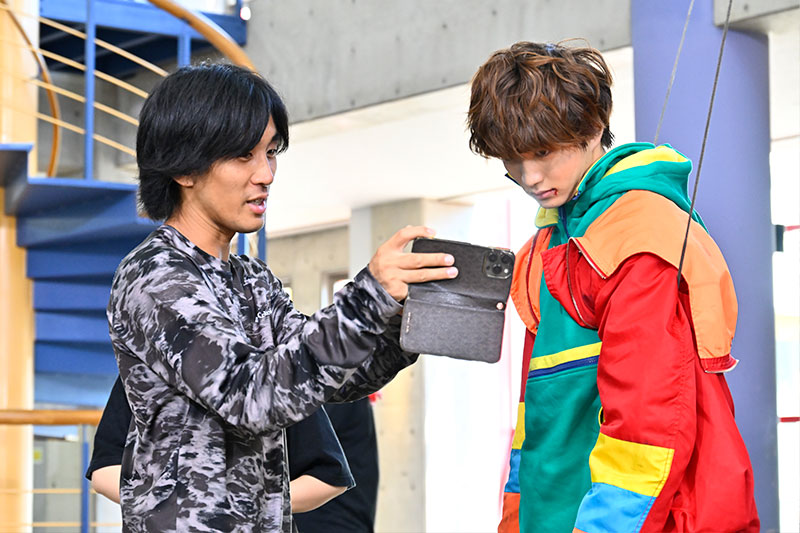 たくさんのエキストラさんが参加されるシーンということで出番前からちょっとソワソワしていた知念くんですが、今回は変身前の状態で色々な動きにチャレンジ!