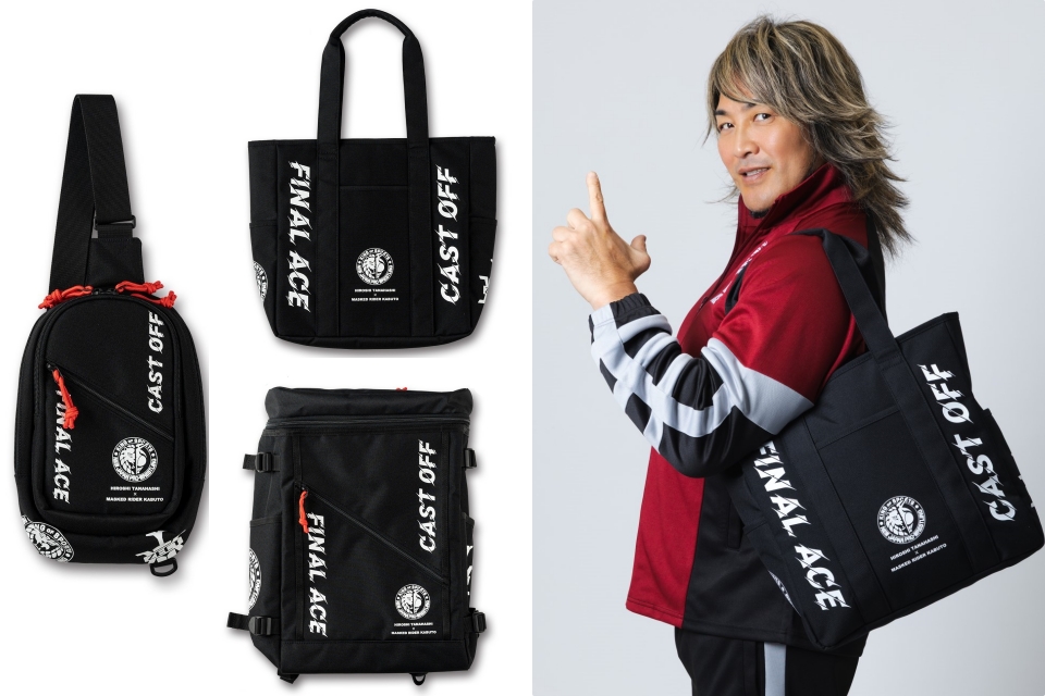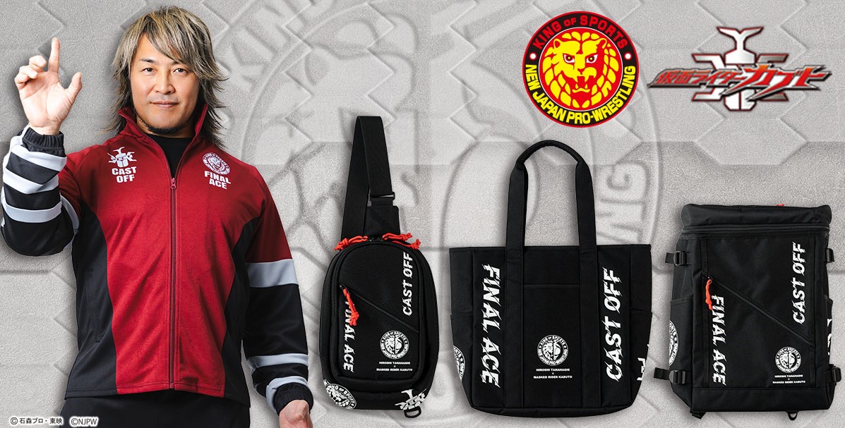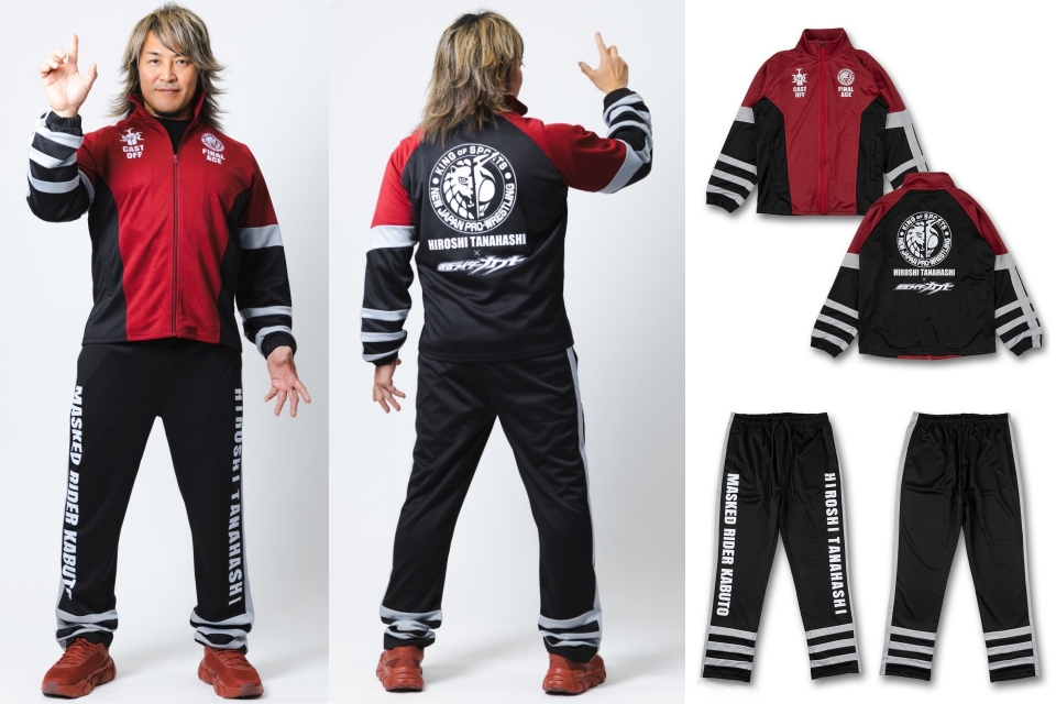 棚橋弘至と仮面ライダーカブトのコラボ第二弾!100年に一人の逸材、新日本プロレスの棚橋弘至選手の引退記念、仮面ライダーカブトとのコラボアイテムにトラックスーツ(ジャージ)、バッグが登場。普段使いやすいデザインです。