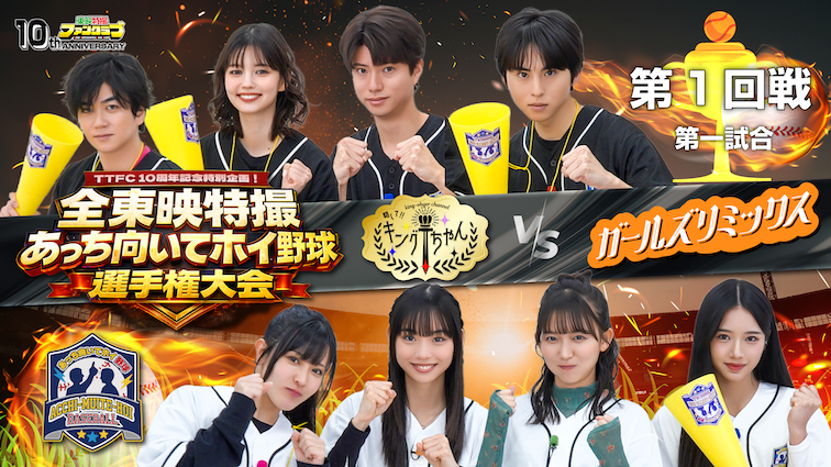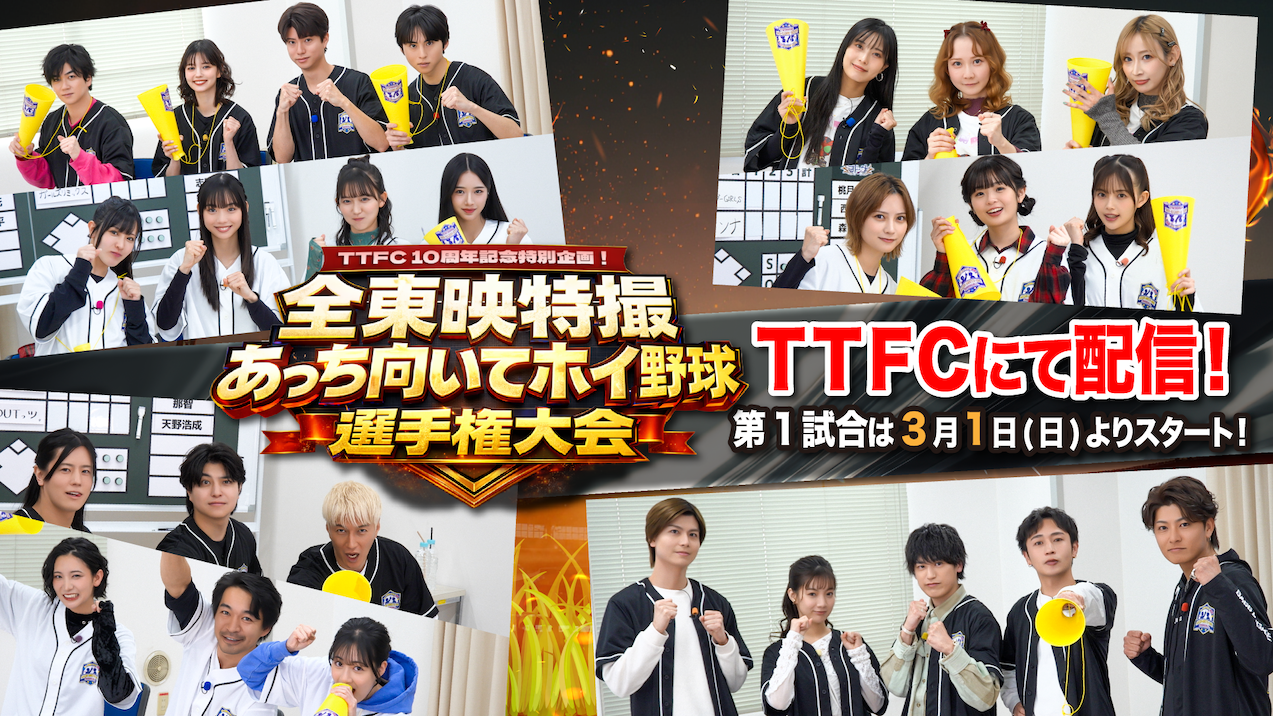放送中のニチアサ出演者による大人気キャストバラエティ企画「あっち向いてホイ野球」*が、TTFC(東映特撮ファンクラブ)10周年を記念したスペシャル企画『全東映特撮 あっち向いてホイ野球選手権大会』として配信決定!