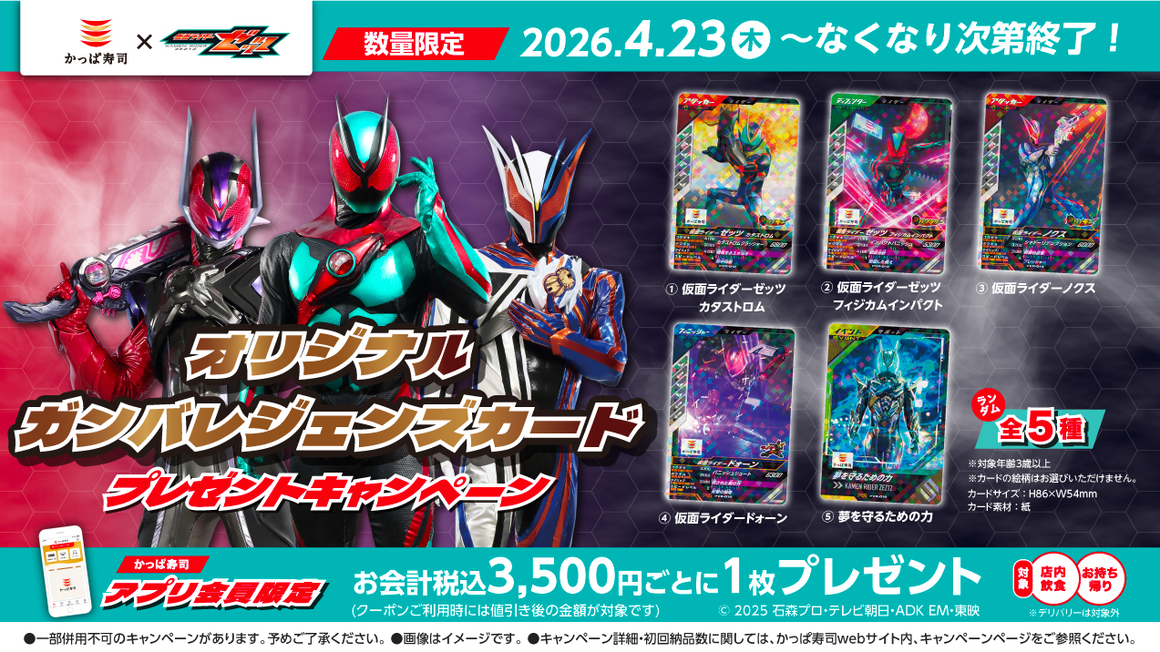 【かっぱ寿司アプリ会員限定】 「オリジナルガンバレジェンズカード」(全5種)プレゼントキャンペーン開催!