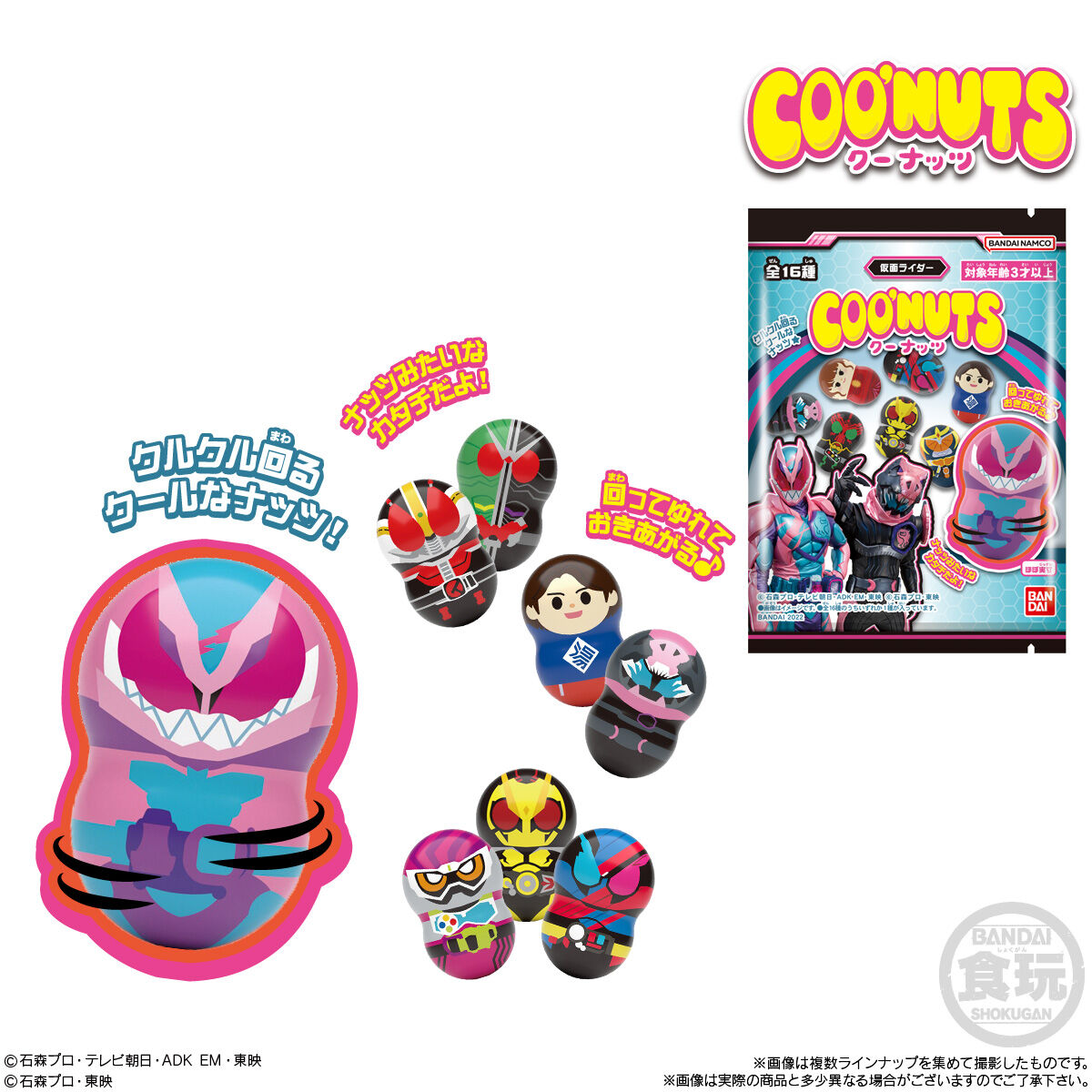 〝クルクル回るクールなナッツ〟がコンセプトの食玩フィギュア「クーナッツ」シリーズに、遂に「仮面ライダー」が登場!!