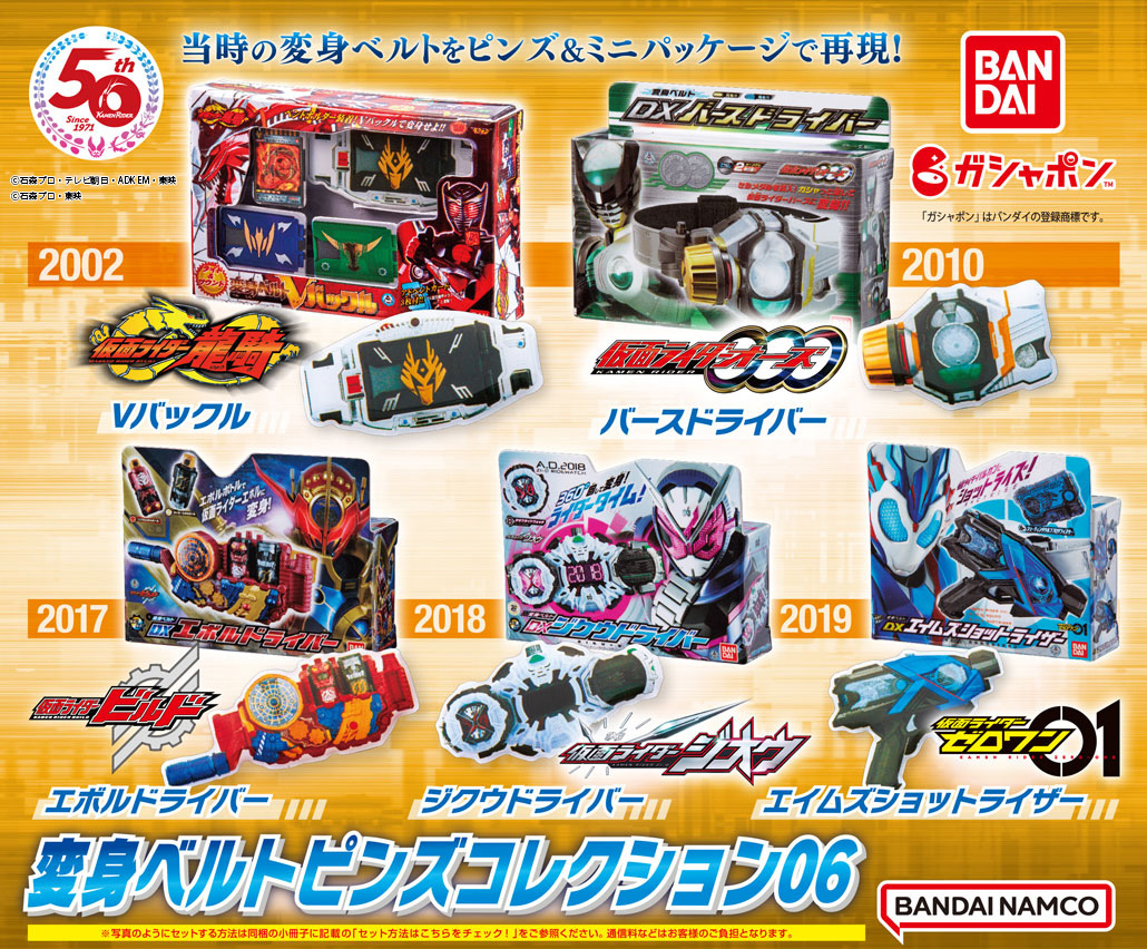 当時の変身ベルトをモチーフにした変身ベルト型ピンズ+ミニパッケージのセット「仮面ライダーシリーズ 変身ベルトピンズコレクション」の第6弾が、