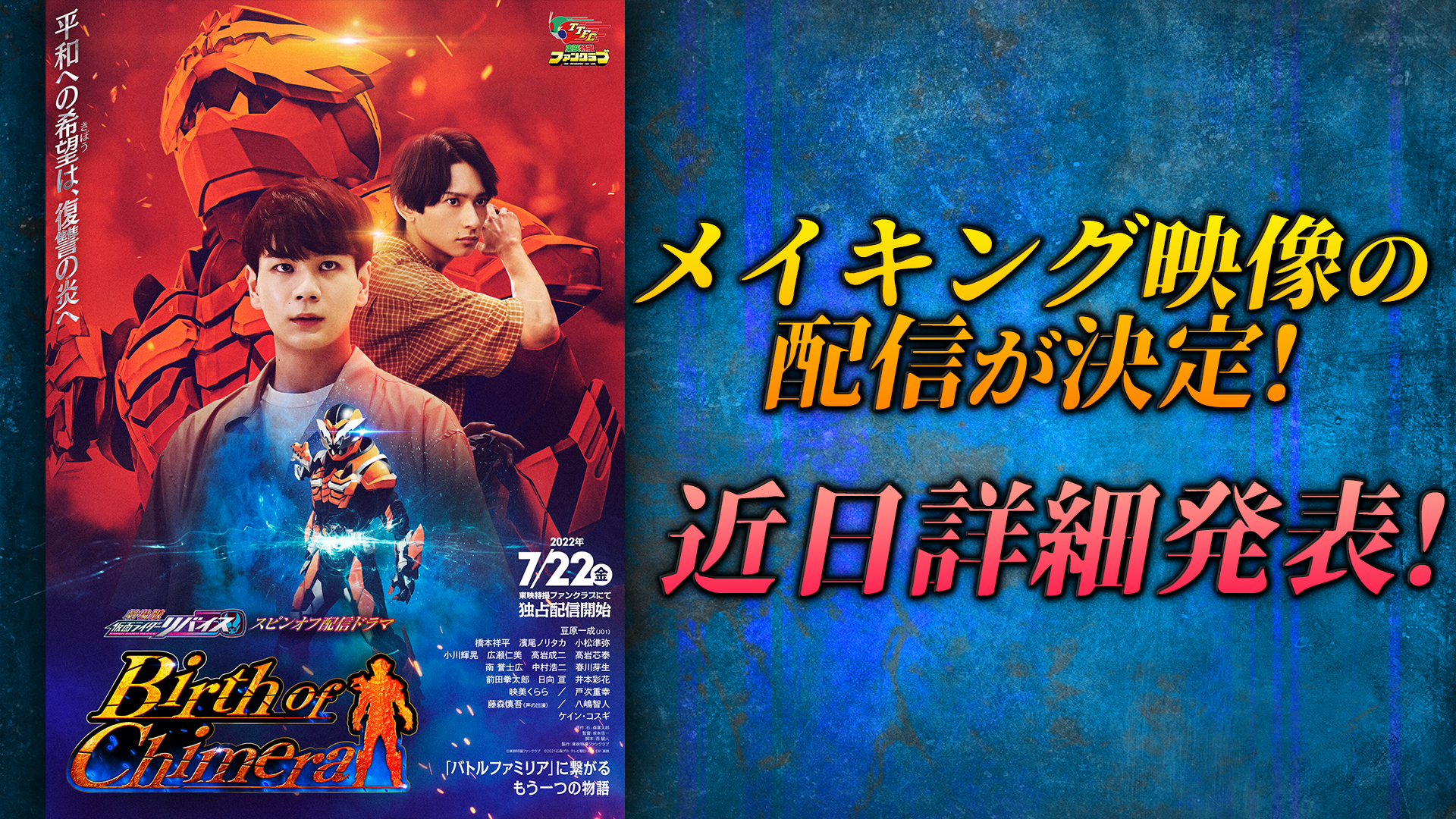 TTFCオリジナル『「劇場版 仮面ライダーリバイス」スピンオフ配信ドラマ「Birth of Chimera」』のメイキング映像の配信が決定!