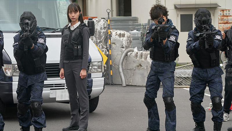 人工知能特別法違反の通報を受け完全武装のもと現場に駆け付けたふたり。技術顧問として武器の使用権限を持つ唯阿と、隊長を務める諫のパワーバランスはまだ拮抗状態。「俺がルールだ!」と突き進む諫に対して、唯阿が手を焼く場面もしばしば。