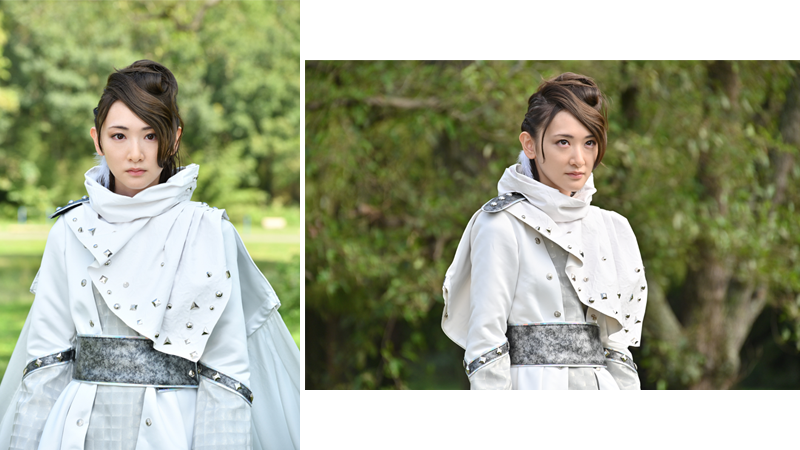 白をベースとした衣装の華やかさと生駒さんの演技にご注目下さい。