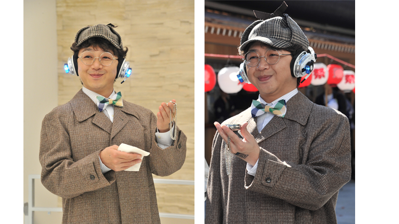 「ヒューマギアによる大和田伸也氏殺人未遂事件」捜査のため、警察が飛電インテリジェンスにやってくる。そんなピンチに颯爽と現れたのは…謎の探偵ヒューマギア、ワズ・ナゾートク!ヒューマギアなのにヒューマギアらしからぬヒューマギアという実に難しい役どころを絶妙なバランスで演じているのは辻本耕志さんです。お笑いトリオ「フラミンゴ」のメンバーとして、さらにコント師として、舞台を主戦場に活躍する辻本さん。一見ふざけているように見えるワズのセリフ、表情、所作、そしてそのタイミング、すべてが辻本さんの計算の上です。難しいシーンをわかりやすく、面白いシーンをもっと面白く、そして重要なシーンにその意味を隠して演じてくれます。前週の大和田さんとは別のアプローチで、プロの仕事を見せてくれました。