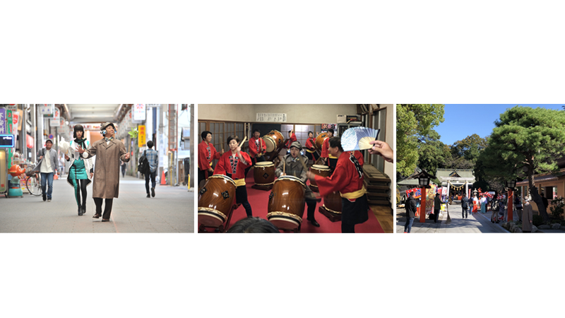 基本的にどんなドラマでもロケに行く場合、制作部さんがロケ先を探し、撮影交渉をすることで初めて撮影が可能になります。今回は、ワズが秋のお祭り準備で賑わう町内会の方々に聞き取り調査を行う話だったので、下町やお祭りっぽい場所として「高崎中央銀座商店街」「熊谷陣屋太鼓保存会」「玉村八幡宮」の皆さまにご協力いただきました。中でも「玉村八幡宮」のロケが決まったのは撮影のなんと2日前!実に美しい境内の雰囲気はまさに制作部さんの粘り勝ちでした。さらに、「玉村八幡宮」では巫覡さんと巫女さんが、「熊谷陣屋太鼓保存会」では会の皆さんが、それぞれご出演いただいております。一つ一つのシーンは短かったですが、皆さんのご協力のおかげで作品に説得力が生まれるのです。