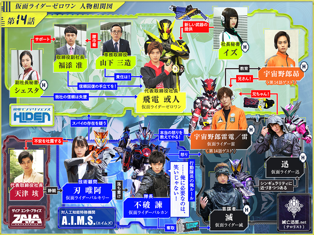 注意深く「ゼロワン」を見ている方々であればお分かりかと思いますが、ゼロワンは自分のことをまだ“仮面ライダー”と称していません。(※告知などの例外を除く)一方で、諌や唯阿がバルカンやバルキリーに変身をするときには、高らかに「仮面ライダー、仮面ライダー、仮面ライダー……」という音が響き渡ります。さらに、14話でZAIAの社長である垓の口から飛び出した「仮面ライダーの神話」という言葉。これらの事実には、いったいどのような関係があるのでしょうか。
