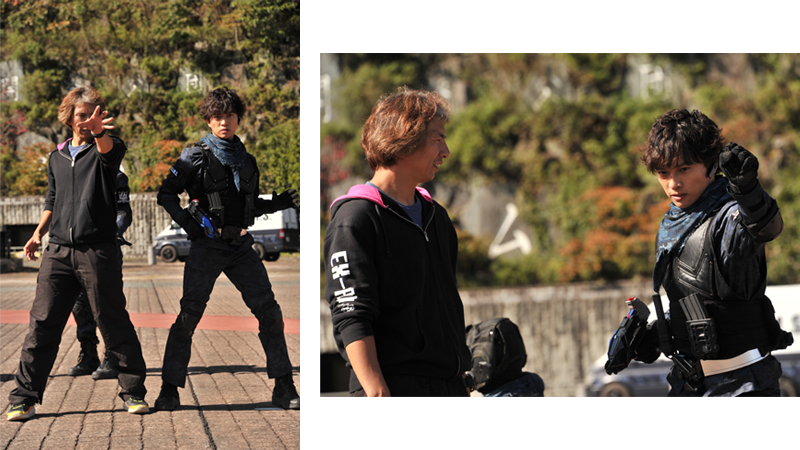 この変身ポーズはアクション監督の渡辺さんに諫役の岡田さんが自ら提案し、向かってくるウルフを握りつぶすことで怒りを表現する形となりました。不破諫という役に約半年近く向き合ってきた岡田さん。そのシンクロ率は既に1000%に達しているのかもしれません。