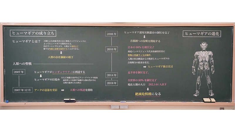 美術スタッフをはじめとするスタッフ総出で完成したヒューマギア板書がコチラです!!!