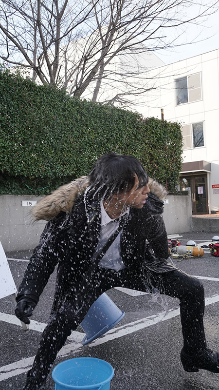 この日とは、諫が水をかぶり、火災現場に突入するシーンの撮影です。