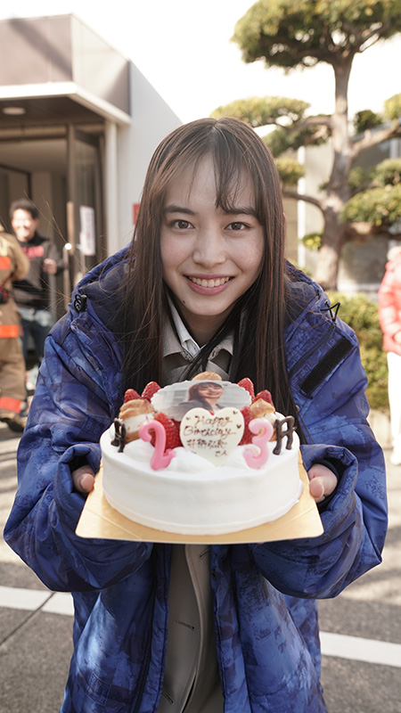 唯阿はA.I.M.S.とZAIAというふたつの立場を持つ複雑な役どころでもあるため、シリアスな演技が多い一方、現場での井桁さんは誰よりも眩しい笑顔で気遣い上手なしっかり者。まさに皆の”お姉さん“である井桁さんの2月3日に23歳という記念すべきタイミングをゼロワンの現場でお祝いできたこと、スタッフ一同嬉しく思います。