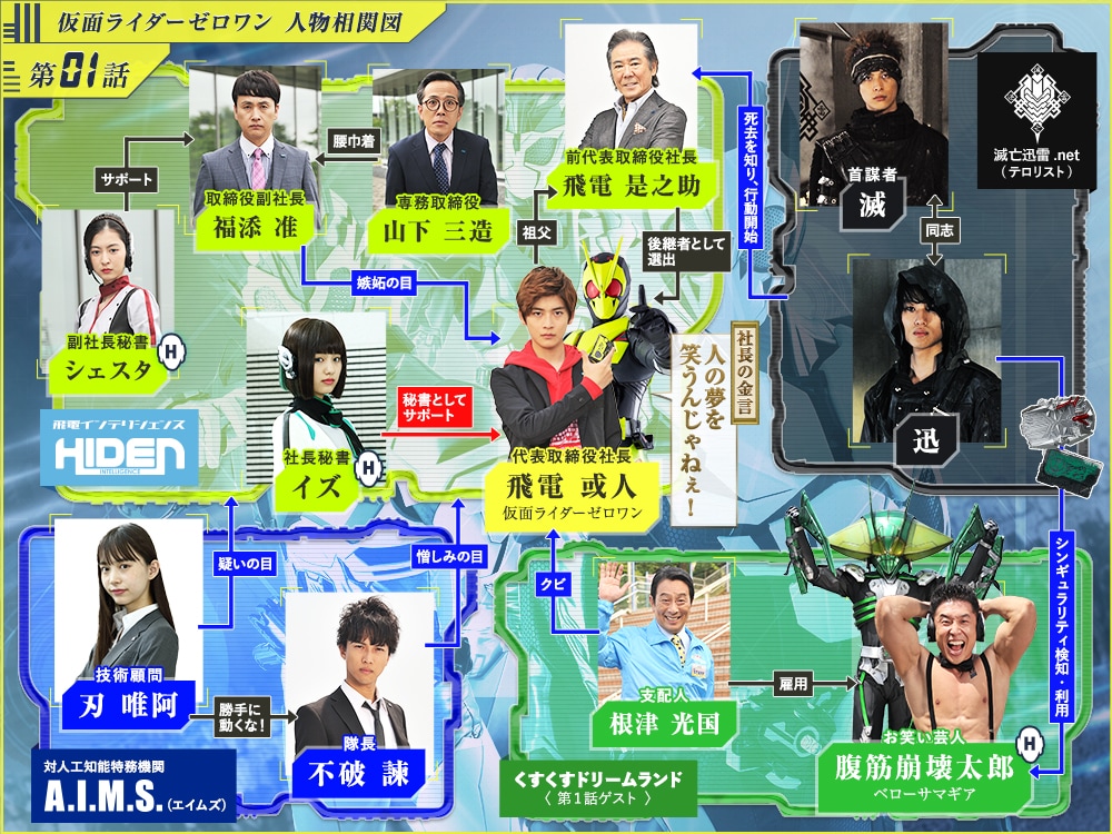 AIのリーディングカンパニーである飛電インテリジェンスの代表取締役社長となった或人のもとに、A.I.M.S.(エイムズ)というAI犯罪の捜査を行う特務機関の不破諫(ふわ いさむ)と刃唯阿(やいば ゆあ)が訪ねてくる。遊園地でヒューマギアが暴走した事件について、飛電インテリジェンスが隠し事をしているというのだが―――。