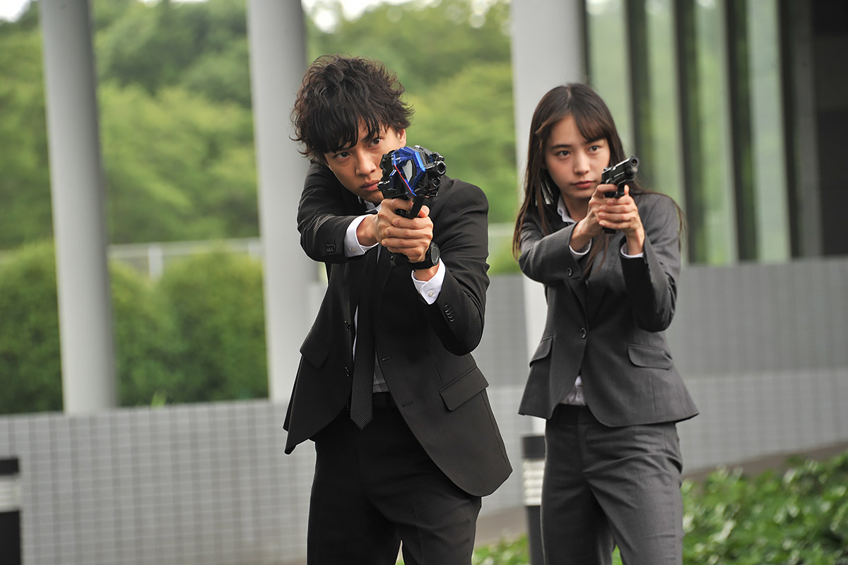 「待て不破!」凛とした一喝。対人工知能特務機関A.I.M.S.の技術顧問としてテクノロジーに精通し、武器の取り扱いに関する一斉の権限を持つのが唯阿の役目。演じるのは井桁弘恵さんです。