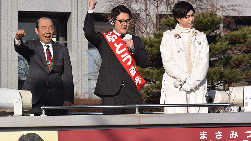 そして、そんな由藤の傍に侍る後援会長役を務めてくださったのは古沢一郎さん。古沢さんと言えば、知る人ぞ知る「空耳俳優」。こんな人いるいる! という人物にピタリとはまる芝居は天下一。おふたりの演技があってこその、MCチェケラをシンギュラリティに至らせる重要なシーンとなりました。