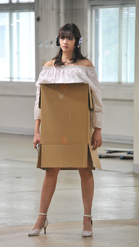 第31話から始まった飛電製作所の《ヒューマギアを失って困っている人を助けるお仕事》。2回目の今回活躍したのはファッションモデルヒューマギア! 演じてくださったのは自身もモデルとして活躍する木津レイナさんです。《お仕事》がテーマのゼロワンにおいてしばしば登場するいわば“本職ヒューマギア”。お笑い芸人のなかやまきんに君、俳優の崎本大海さんに次いで3人目のプロフェッショナルでした。抜群のスタイルで段ボールだって着こなします。