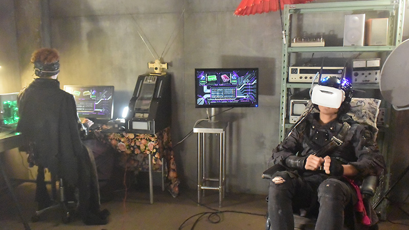 ちなみに、迅が亡の意志を呼び出すためにアジトで使用していたヘッドギア。実は本編2話で登場する予定だった幻の小道具を使用しています(右が幻のカット)。ヘルメットにPCのキーやらLEDやらいろんなものを貼り付けて作られた小道具さん渾身のアイテム! 諫の頭の中の亡をめぐって、今後も活躍の予感……?