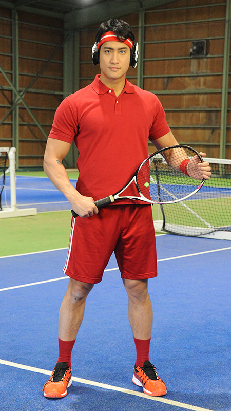 全身真っ赤なウェアにヘアバンド。爽やかな笑顔ととにかく熱(苦し)い仕草が特徴的な“熱すぎる”テニスコーチヒューマギア・ラブチャンを演じたのは佳久創さん。惚れ惚れしてしまう鍛え抜かれた体格は、実はテニスではなくラグビーで培われたもの。しかも元プロ選手として活躍していた本物のアスリートなのです。テニスはほぼ経験がなかったにも関わらず、持ち前の運動神経で見事にテニスコーチヒューマギアを演じてくださいました。