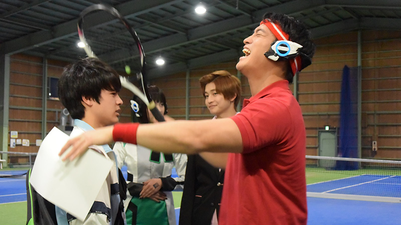 最初に撮影したテニスのシーンは、圭太からコーチ募集のポスターを受け取る場面。この前に或人にプロテニスプレーヤーになると言って意気揚々とサーブ練習を始めようとする動きがあるのですが、放送をバッチリご覧いただいた方は気づいたはず。佳久さん、本番テイクで思わぬ奇跡を起こしました。