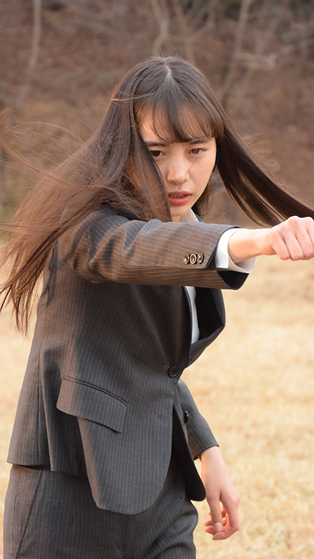 主役のふたりは、アクション監督・渡辺淳さんと念入りに動きのチェック。