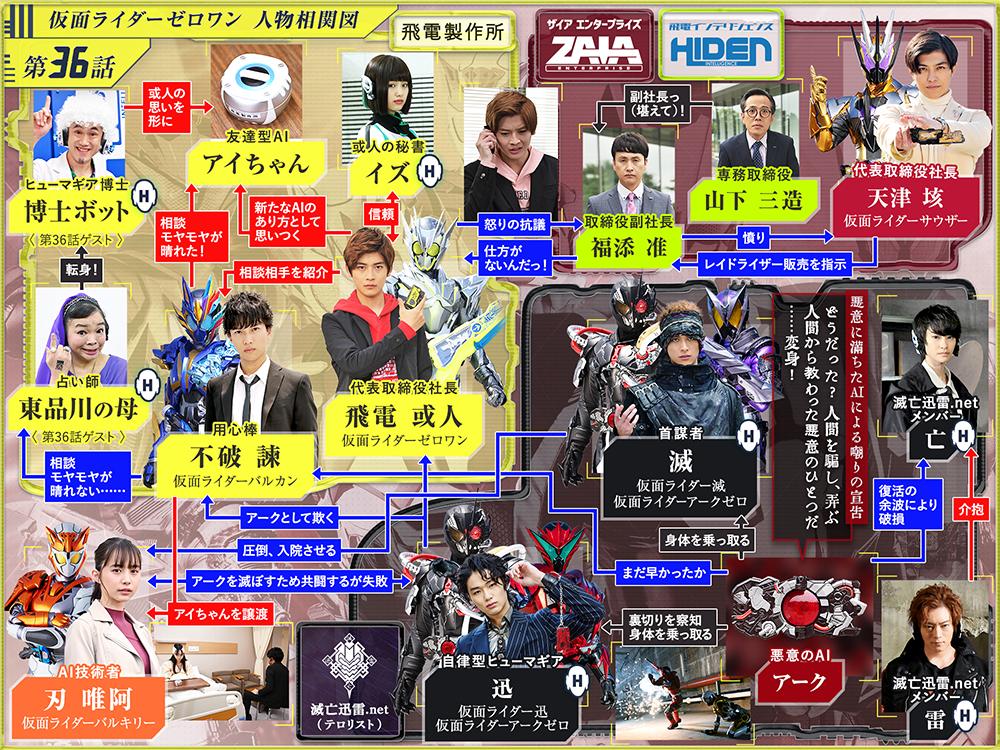 “最終章スタート”を謳った「ゼロワン」ですが、今後は「ゼロワン」のテーマのど真ん中である人工知能を見つめる最終章になっていきます。アークという人間を超える人工知能の誕生がテーマだった36話ですが、「アイちゃん」というただ人に寄り添うだけのAIも同時に生まれました。人工知能に対して懐疑的だった諌の心をとかしたアイちゃんはさらに、AIを道具だとみなしていた唯阿の手元に渡りました。一方で、人工知能の力を信じ続けてきた或人は、人間を超えてしまったAIの恐怖に初めて触れ、落ち込みます。