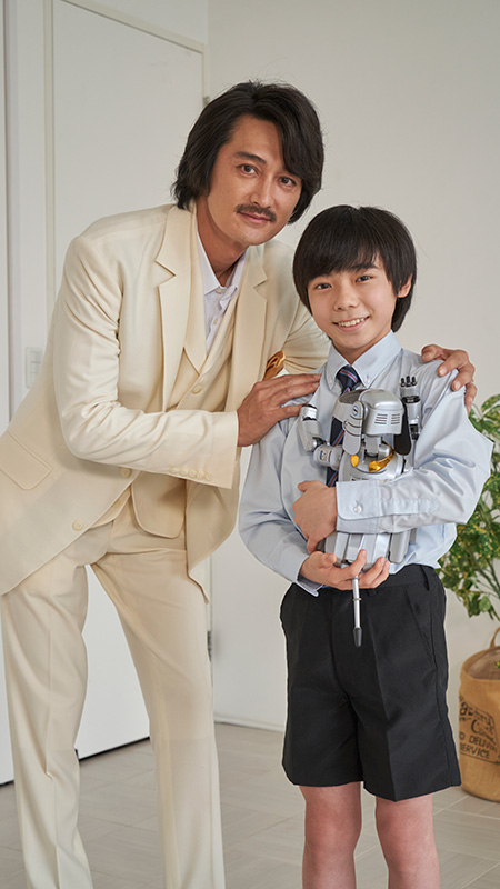 現在45歳の垓の35年前、10歳の垓を演じてくださったのは星流(せいる)くん。大のライダーファンで、最推しはフォーゼ! ゼロワンの中では「やっぱりゼロワンが一番好き」と笑顔で語ってくれました。厳しいことを言われてばかりでも、お父さんのことが大好き。健気に期待に応えようとする姿や、AI犬・さうざーと楽しそうに接する姿に、撮影現場はほんわかと癒しに包まれていました。