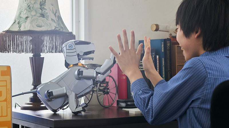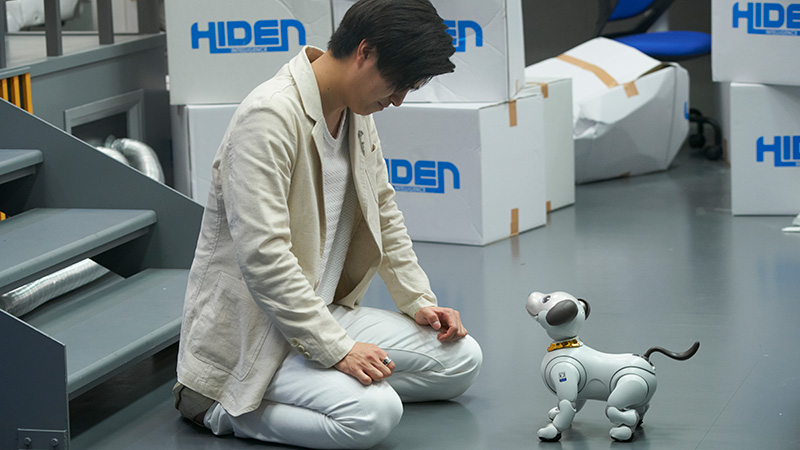 ドラマの中では、垓の想いに応えたゼアが「最新モデルに復元してくれた」というストーリーでしたが、35年前設定の幼い垓と共にいたのは旧モデルのAIBO。1999年に発売されたERS-111型で、現実世界でも約20年前のモデルが復活した形となります。aibo開発メンバーに大切に保管されている個体で、過去にはスティーブ=ジョブズにも会ったことのある子なのだとか……。バンザイやキック、バイバイなど、チャーミングな動作は健在。幼い垓を励まし、元気づけ、常に寄り添ってくれたまさに“相棒”。歯を食いしばって箱にしまうシーンは、現場でも涙なしには見られませんでした。