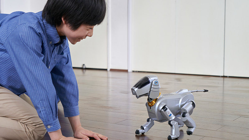 多次元プリンターザットの中で目を覚まし、起動するシーン。抱き上げた垓の胸にソッと収まるシーン、垓を見上げて愛らしく鳴くシーン等……脚本に込められた想いを皆様のサポートとaibo自身の優れたラーニング機能で実現させることが出来ました。