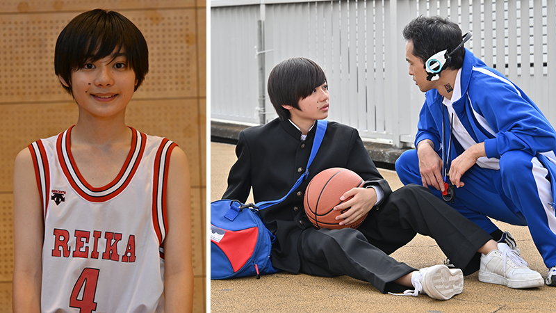 ヒューマギアなのに熱血教師!そんな異色のキャラクターを演じてくださったのは海東健さん。それぞれの職業に特化したヒューマギアたちの魅力のひとつが、パッと印象に残るコスチュームです。バシッと決まった青ジャージと体育教師のアイコン的なストップウォッチにホイッスル……ヒューマギアにストップウォッチは必要なのか? という疑問はさておき、海東さんは完璧に着こなしてくださいました。そして、右側の写真にご注目。海東さんにコービー役をお願いするきっかけのひとつとなったのがこのご自身のバスケの腕前です。指導シーンでも、生徒たちに華麗なプレーを見せてくださいました。