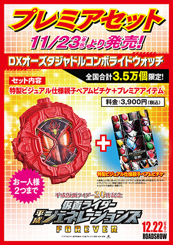 プレミアムセットの特典はDXオーズタジャドルコンボライドウォッチ! 全国で3.5万個限定とのことです。