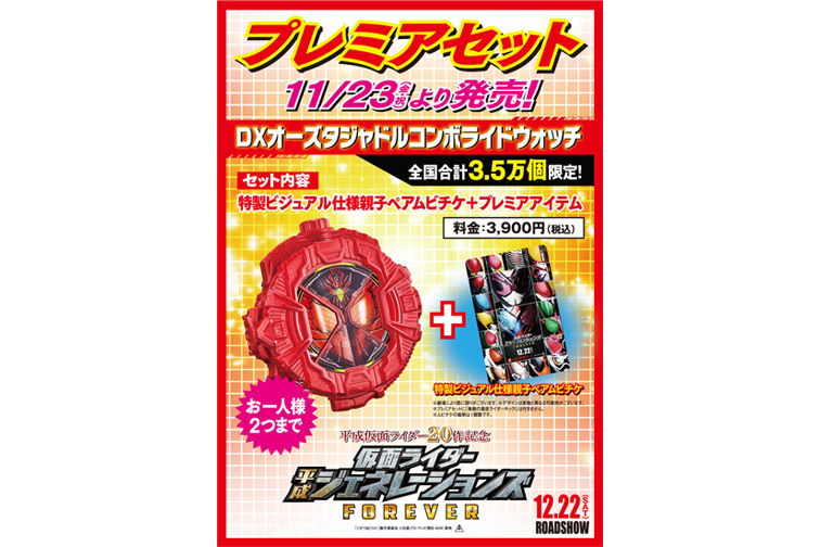 プレミアムセットの特典はDXオーズタジャドルコンボライドウォッチ! 全国で3.5万個限定とのことです。