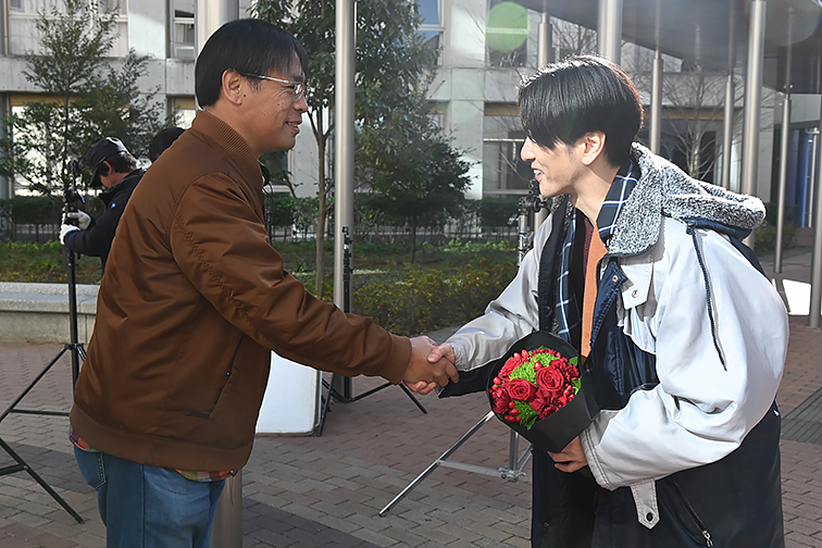 (オールアップの際は、黒で包まれた真紅のお花をお渡しいただきました!おふたりともニッコリです!!!)