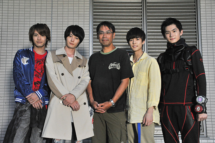 写真は、オールアップのときの一枚です。田﨑監督を取り囲んで、ビルドのふたりと、ジオウのふたりで撮りました!