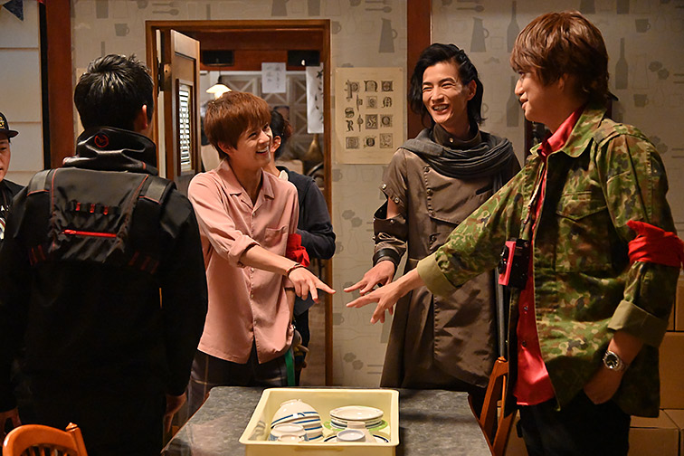 また、別の現場では、井上さんとジオウキャストチームが談笑中。