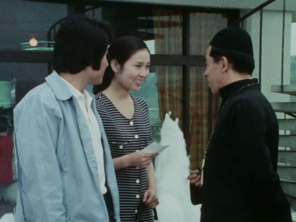 ある日、明夫と結婚式場前で挙式の様子を眺めていたところ、現れた神父から場所と時間を誰にも教えないという条件を守ってくれれば、無料で挙式できると持ち掛けられた。ユリ子には知らせたい友人がいたが、その旨を伝えたところ念を押されながらも許可され、翌日の1時に神父の教会で挙式することになった。その後、ユリ子は喜びを隠せず明雄と土手ではしゃいでいたが、明雄が道に飛び出してバイクで通りかかった風見志郎に叱られる。すると、明雄は「ついうれしかったものですから」と弁明し、続いてユリ子も教会で結婚すると口にするが、神父との約束を思い出した明雄に咎められ、ふたりはそそくさとその場をあとにした。