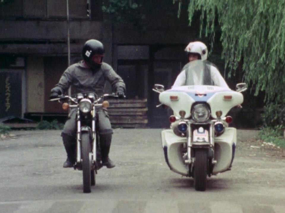 ところが、バイクで移動中に子供の自転車と事故を起こしかけて走り去り、これを目撃した沖一也に追跡される。そして、並走した彼のVマシーンを蹴ろうとしたところ、バランスを崩してガードレールに激突。バイクから投げ出され、一也が呼んだ救急車に乗せられる。しかし、この救急車はジンドグマの処理班が搭乗する偽物で、同乗した一也を始末しようとした怪人、ドクロボールのボール爆弾により車両もろとも爆破された。