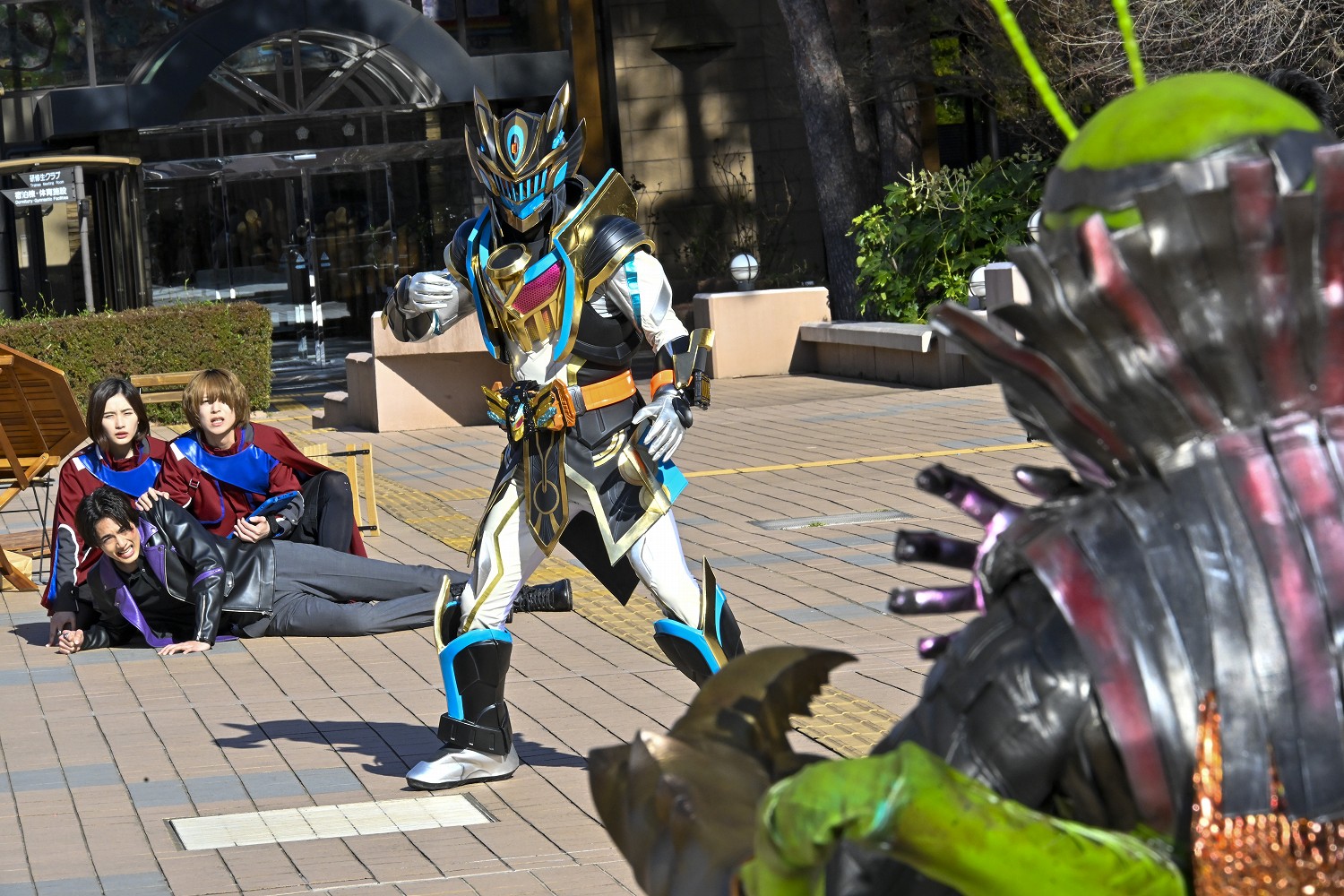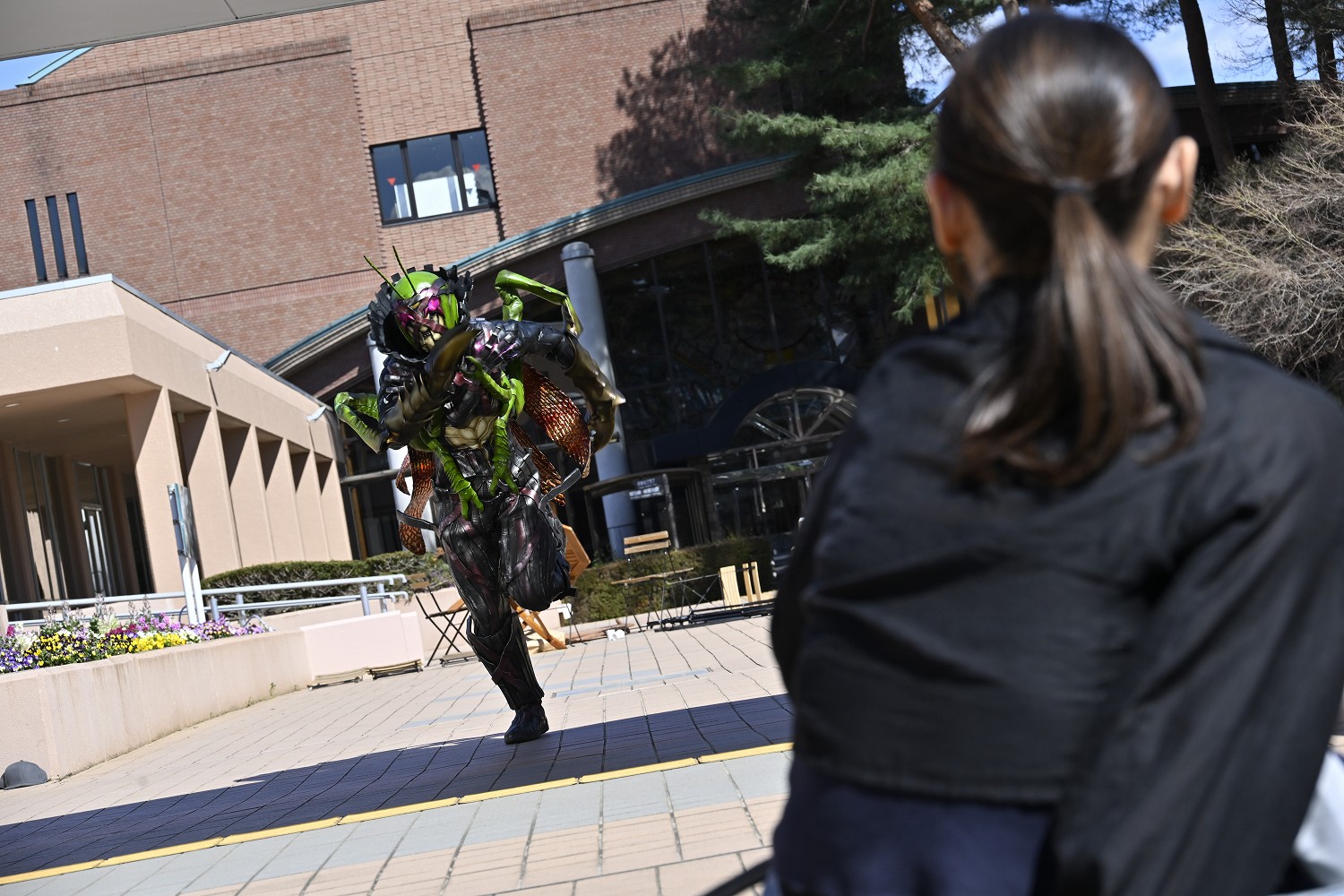 仮面ライダーマジェード サンユニコーンとアントルーパーマルガム(冥黒)の戦いに巻き込まれた女性。