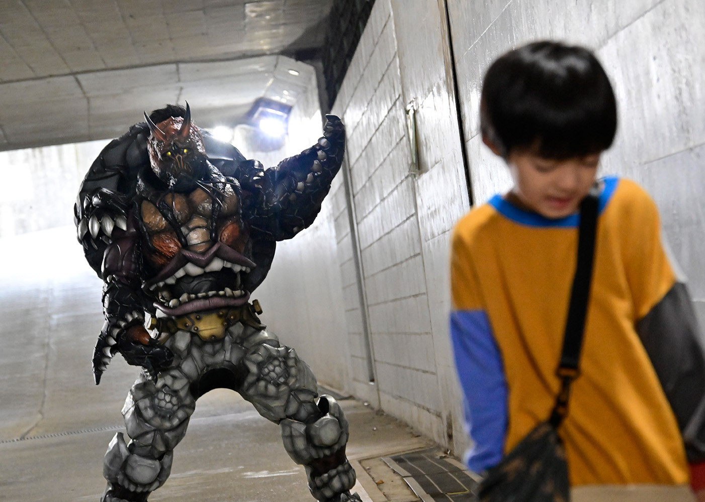 怪物が出ると噂される「峯原トンネル」でお菓子を食べていた少年。