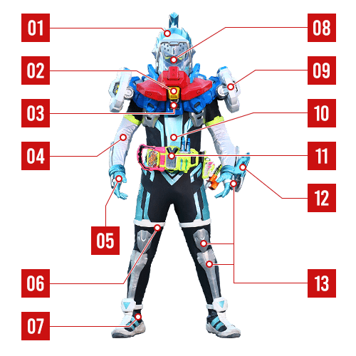 仮面ライダーブレイブの胸部に装着されたエネルギー防御装甲。内部に組み込まれた装置が、全身各部に搭載された「ゲインライザー」の制御プログラムを書き換え、攻撃力と防御力を飛躍的に上昇させる。
