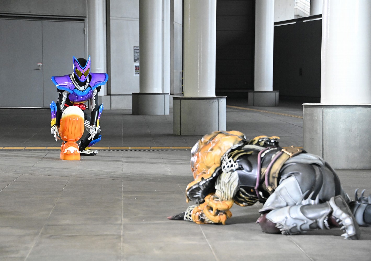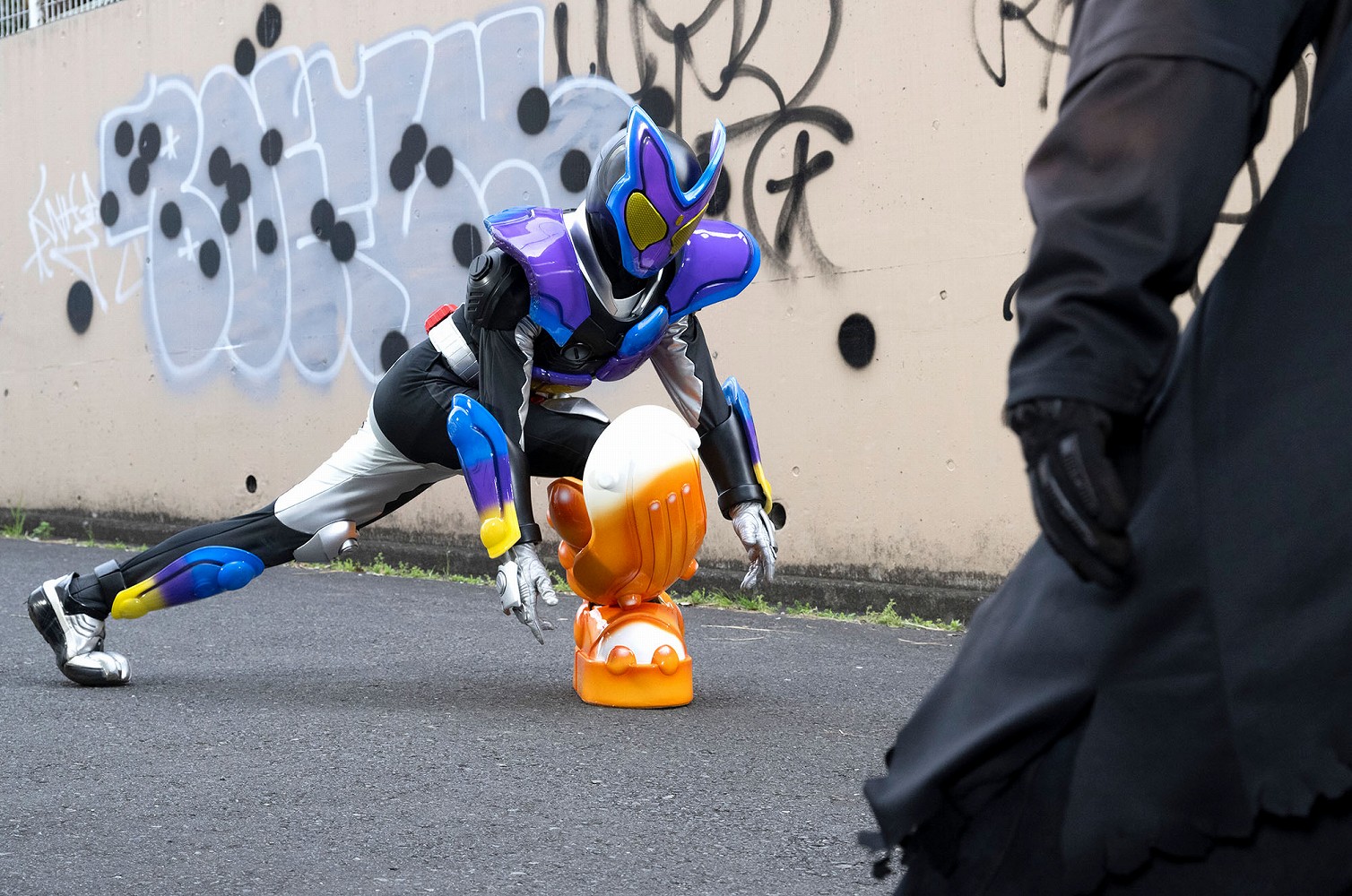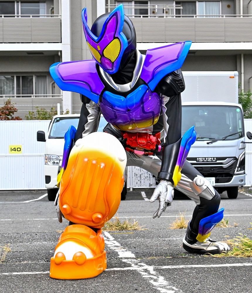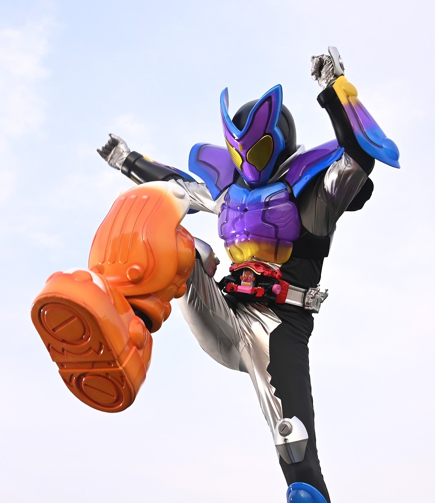 仮面ライダーガヴ ポッピングミフォームがキッキングミゴチゾウを使用した姿。