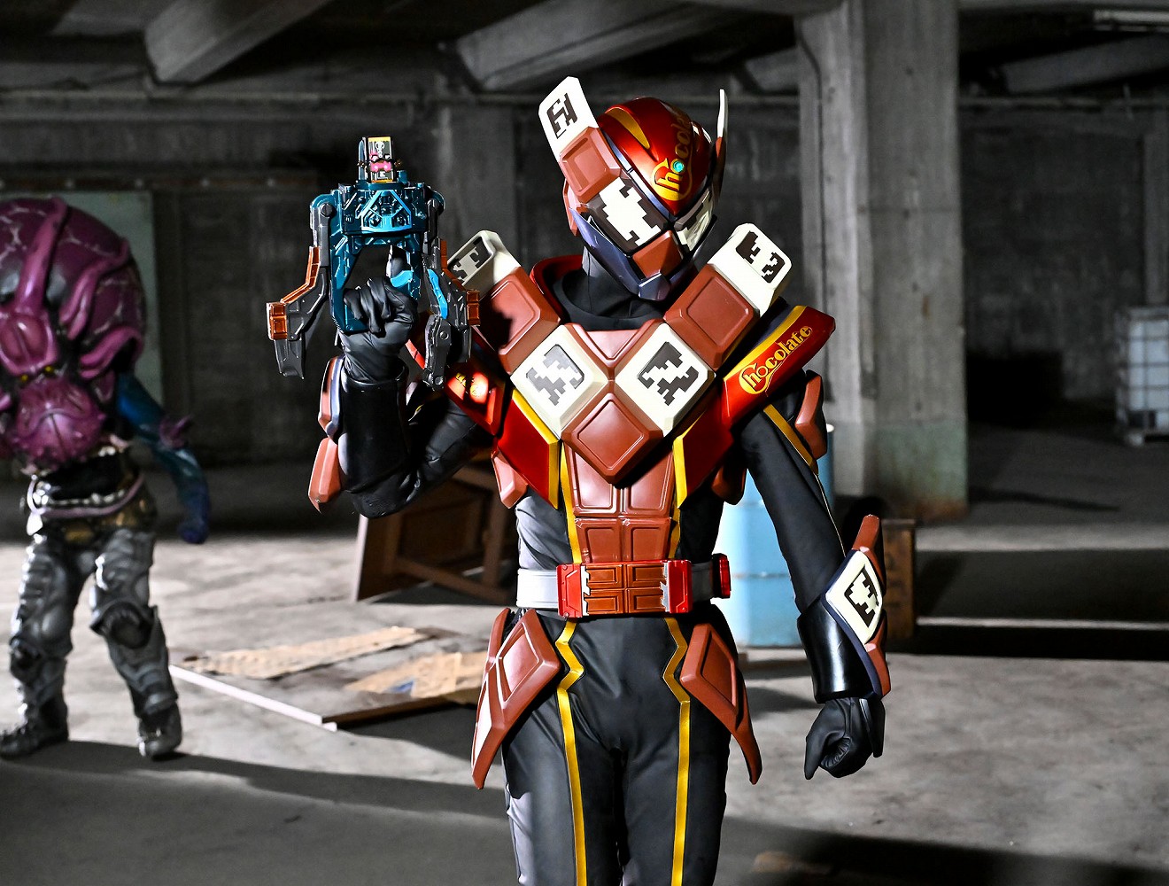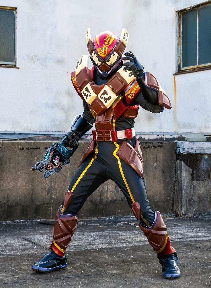 辛木田絆斗が変身デバイス兼 銃型武器「ヴァレンバスター」にチョコルドゴチゾウを装填・変身した姿。
