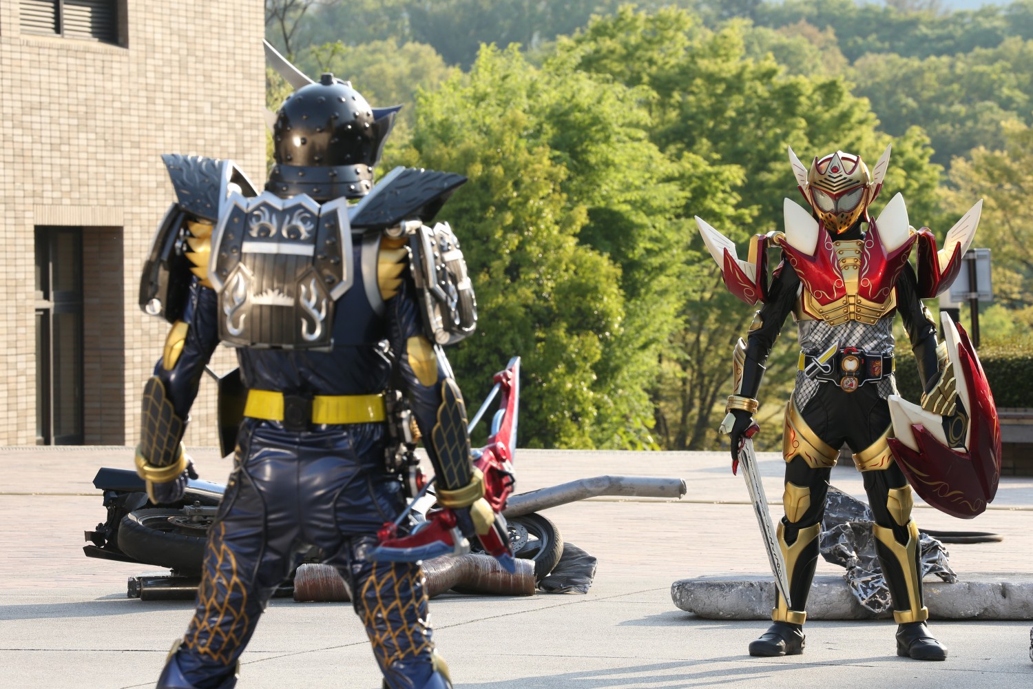 コウガネが戦極(センゴク)ドライバーと金のリンゴロックシードを用いて変身した姿。
