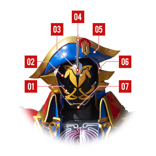 仮面ライダーダークゴーストの頭部を保護する二角帽。歴史上の戦いに関する膨大なデータが保管されており、戦局に合わせた新たな戦術を編み出すことができる。