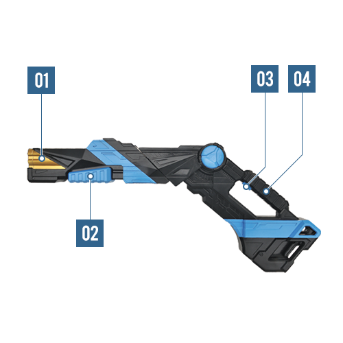 アタッシュショットガンの弾丸生成機構。ハンドルを手前に引くことで、エネルギーを超圧縮した弾丸「PEB(プレスドエネルギーバレット)」が生成・装填される。