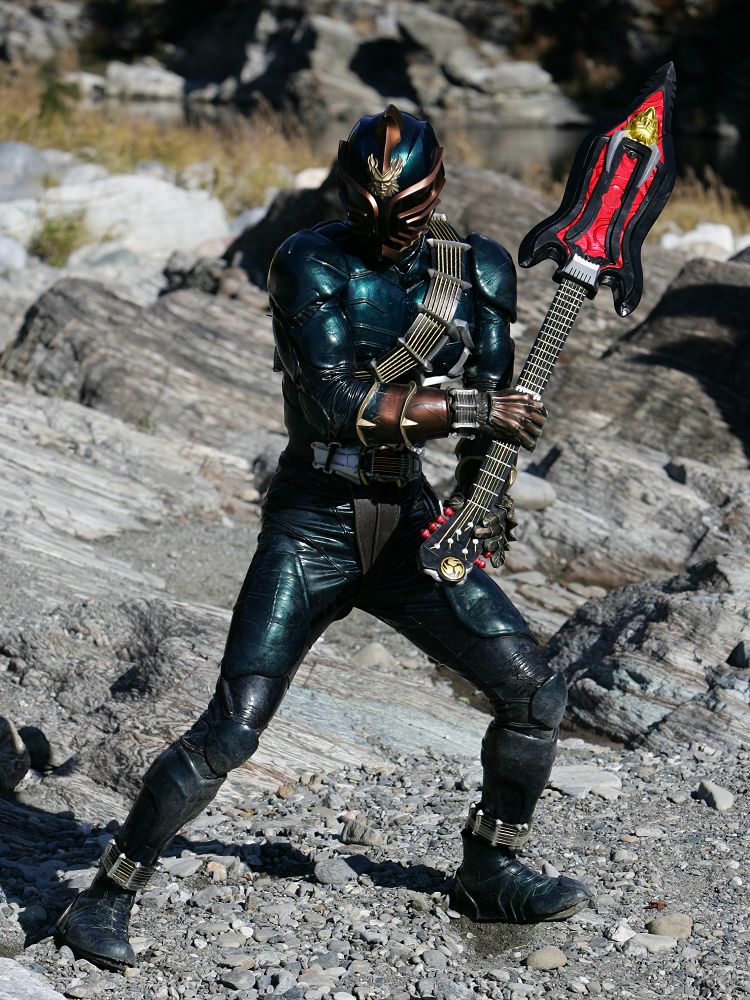 長瀞のノツゴと戦うために一時的に戦線復帰を果たした仮面ライダー斬鬼(ザンキ)に支給された、ギター型の音撃武器。先端部には鋸状の刃が取り付けられている。