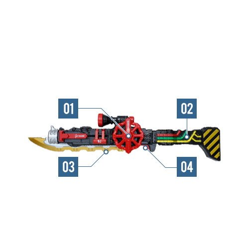 特殊攻撃の発動時に使用するトリガー。スチームチェンジバルブの回転操作を行った後、トリガーを引くことで特殊攻撃が発動する。